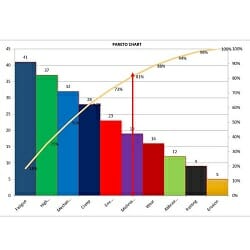 Pareto charts help people decide which problems to solve first. They are useful for identifying the most frequent outcome of a categorical variable. Learn how to transform data into actionable insight by creating a bar graph using the Pareto Principle 80/20 rule.